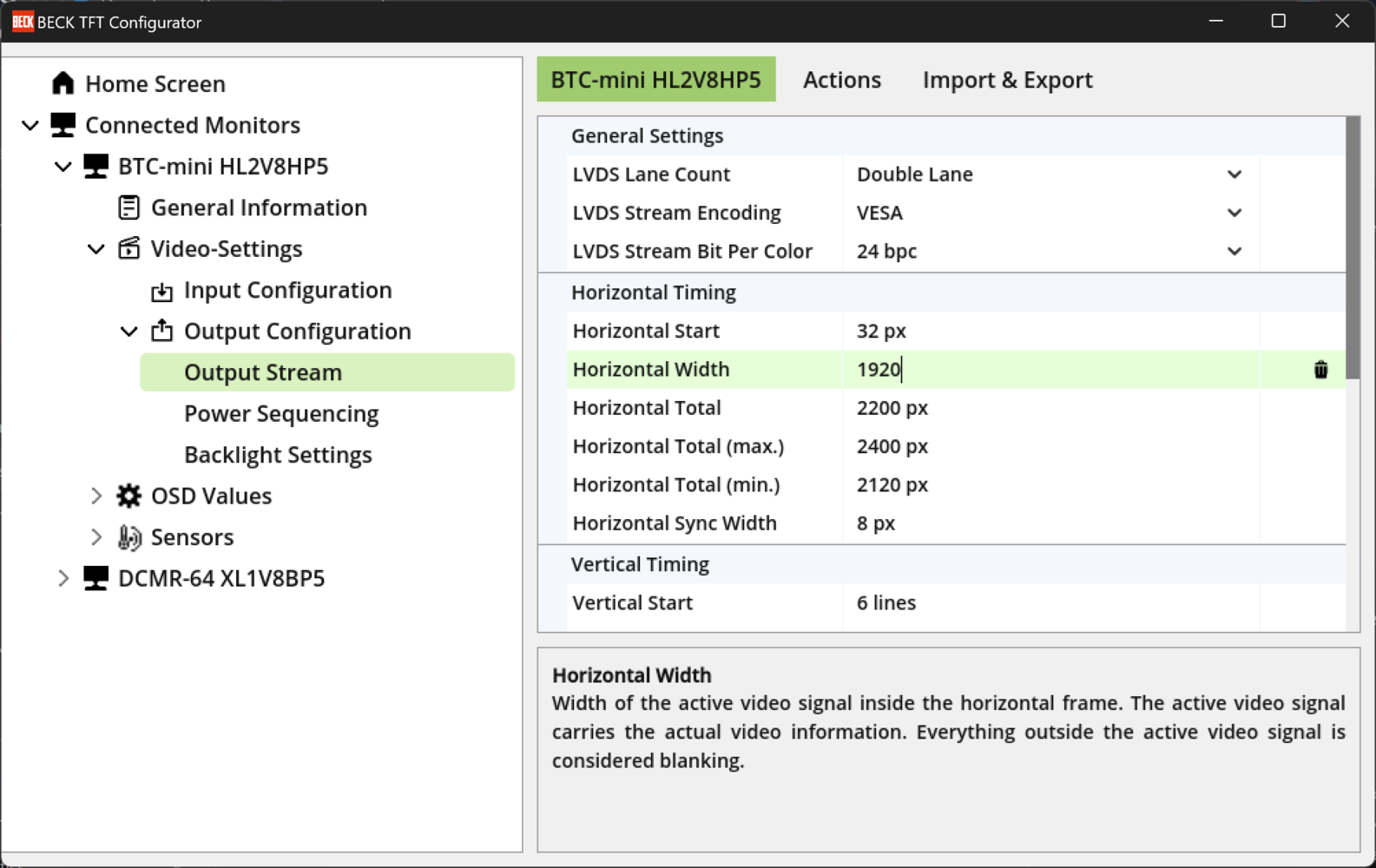With the latest firmware version v1.9 of the BTC-mini and DCMR-64 TFT controllers, customers can now adjust the controllers themselves at their production site via the used video interface, adapting them to the target display through software. Additionally, image settings such as brightness, saturation, or gamma can be conveniently adjusted from the host computer. Configuration is carried out using free tools, either through a graphical user interface, a command-line program, or a C++ library.