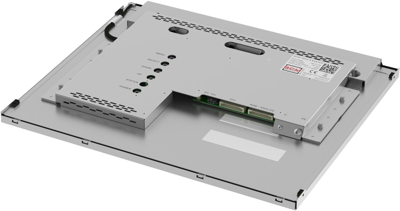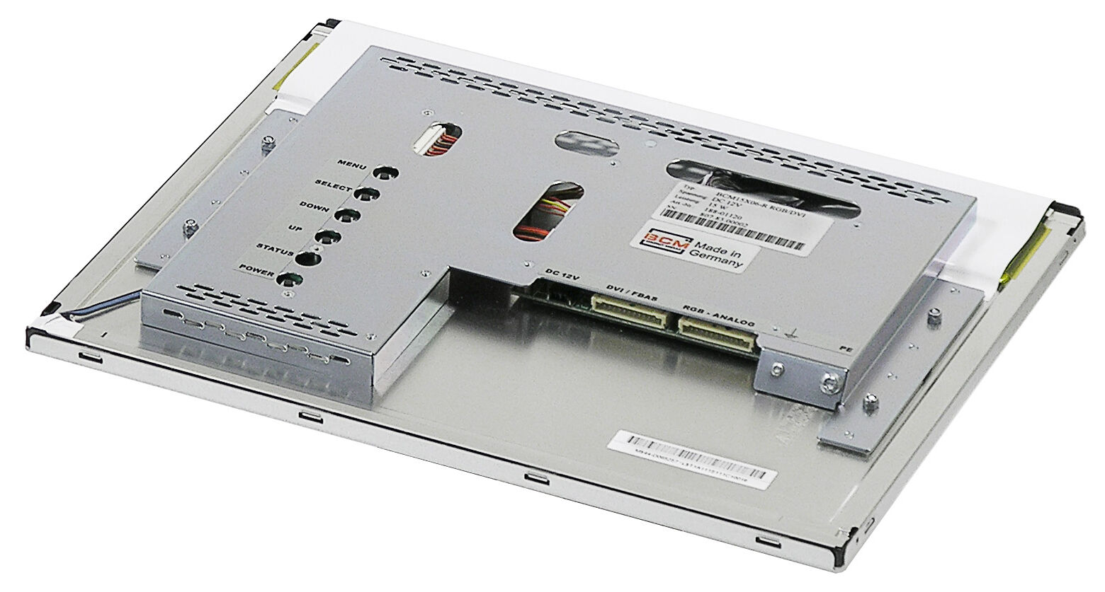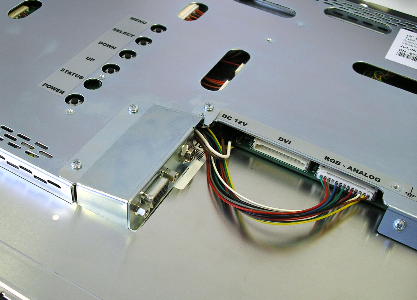 To design this open-frame solution with the lowest possible installation depth, the signal connections (Analog-RGB, DVI) are equipped with single-row flat connectors. In addition to the connecting cables, fixed mountable adapters to use standard connectors are available. The assembly takes place via the mounting points of the base display.