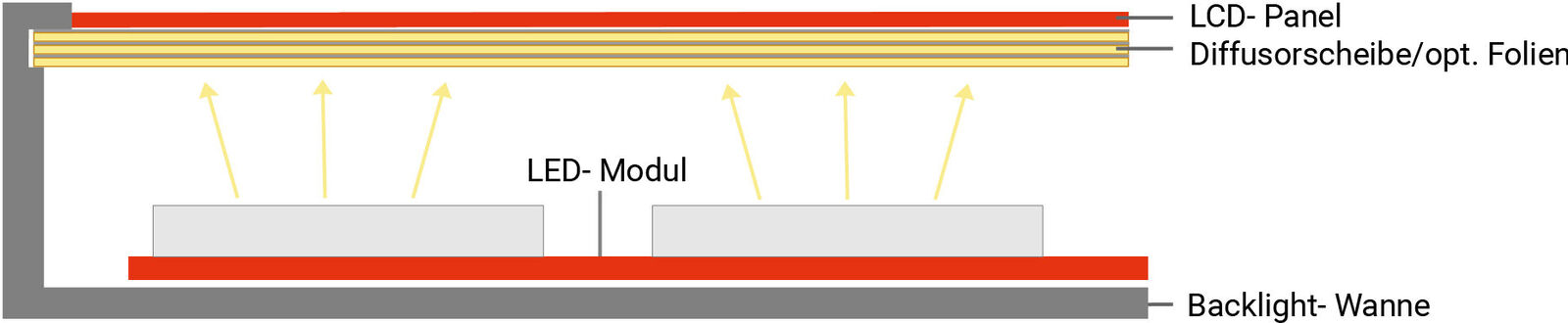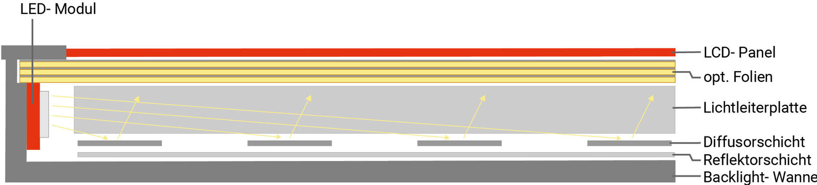 Edge-lit Panels leuchten mit Hilfe einer reflektierenden Folie, welche das Licht, das an der Seite des Gehäuses abgestrahlt wird oder dadurch, dass Licht zufällig aus dem Lichtleiter ausgekoppelt wird, reflektiert. Somit ist es eine relativ ineffiziente Methode der Hintergrundbeleuchtung.