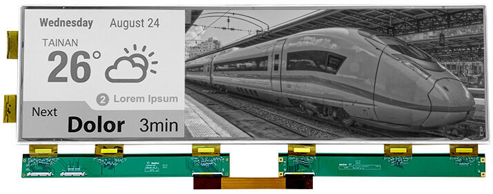 ED280TT1 is a reflective electrophoretic E Ink® technology display module based on active matrix TFT substrate. It has 28” active area with 3840 × 1080 pixels, the display is capable to display images at 2-16 gray levels (1-4 bits) depending on the display controller and the associated waveform file.